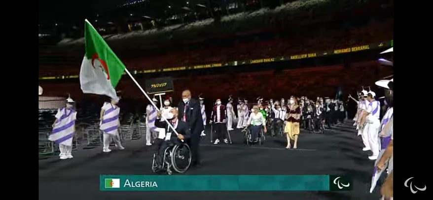 Notre équipe nationale Algérienne, était présente à sa tête le champion du monde de la discipline du Para Powerlifting, catégorie – 65 kg, qui portait l’emblème national suivi de tous les athlètes et le staff qui accompagne.